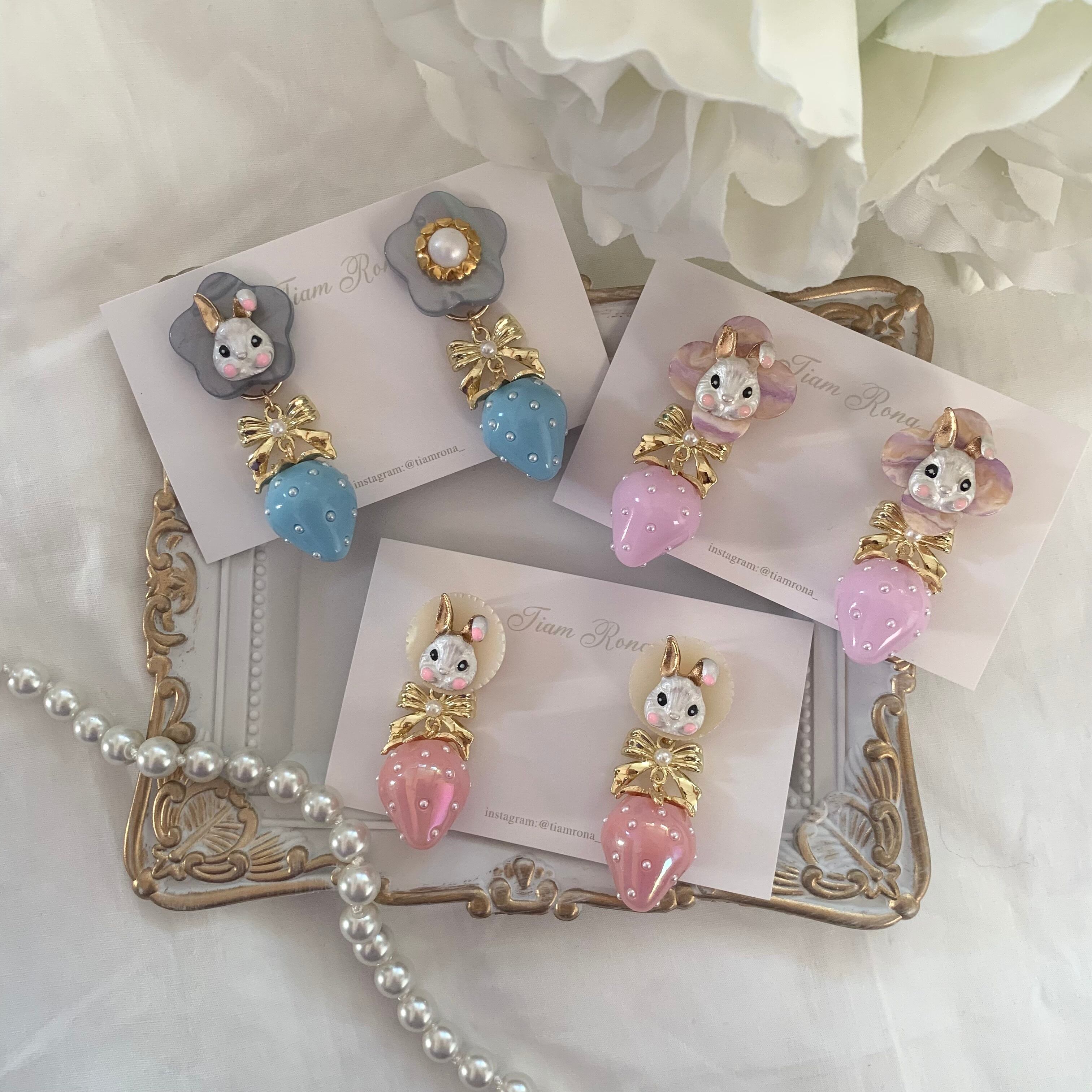 うさぎモチーフのアシンメトリーピアス/イヤリング。